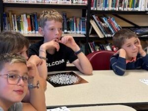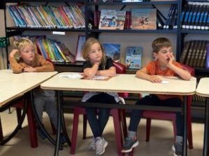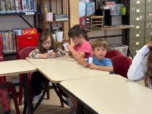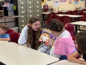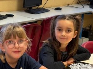 Lecture d’un conte aux élèves du primaire par deux élèves de la classe de quatrième (Héloïse et Naëla) sur la pause déjeuner. Merci !